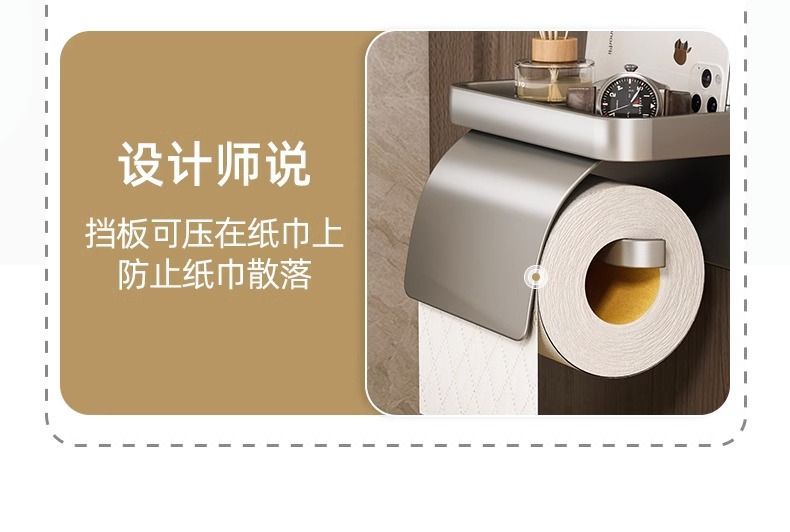 上部に便利な小物置き棚を備えたトイレットペーパーホルダーのカバーです。
