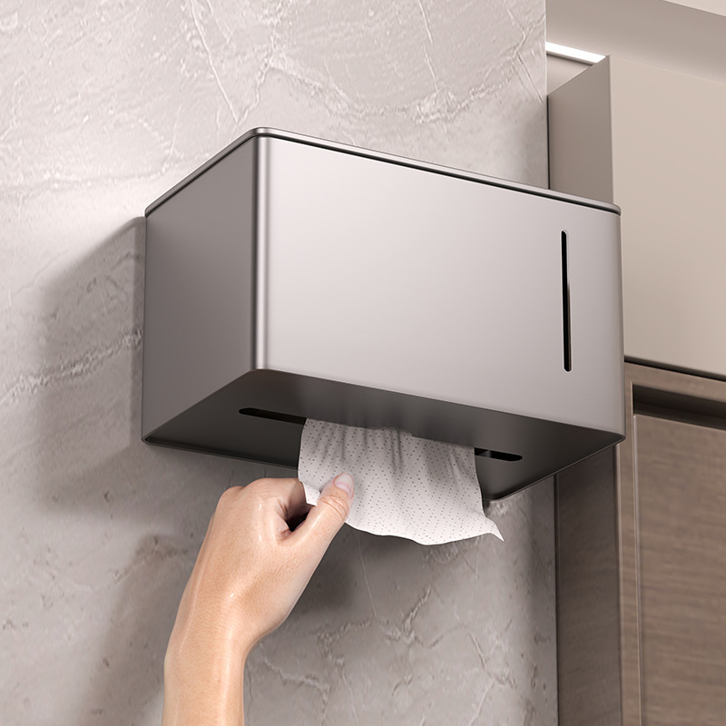 上部に便利な収納棚を備えた多機能なトイレットペーパーホルダーです。