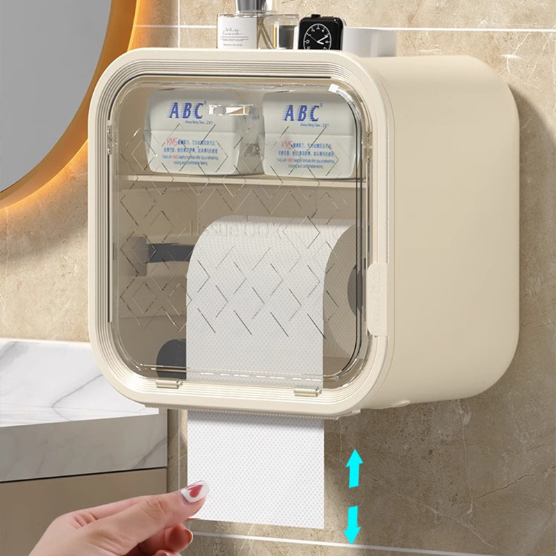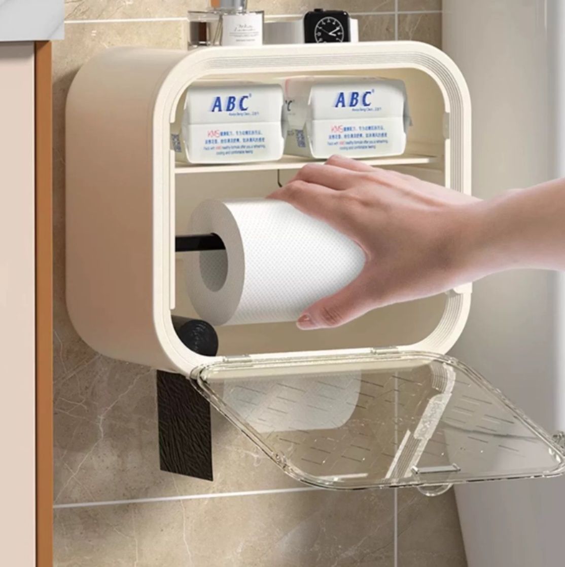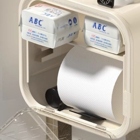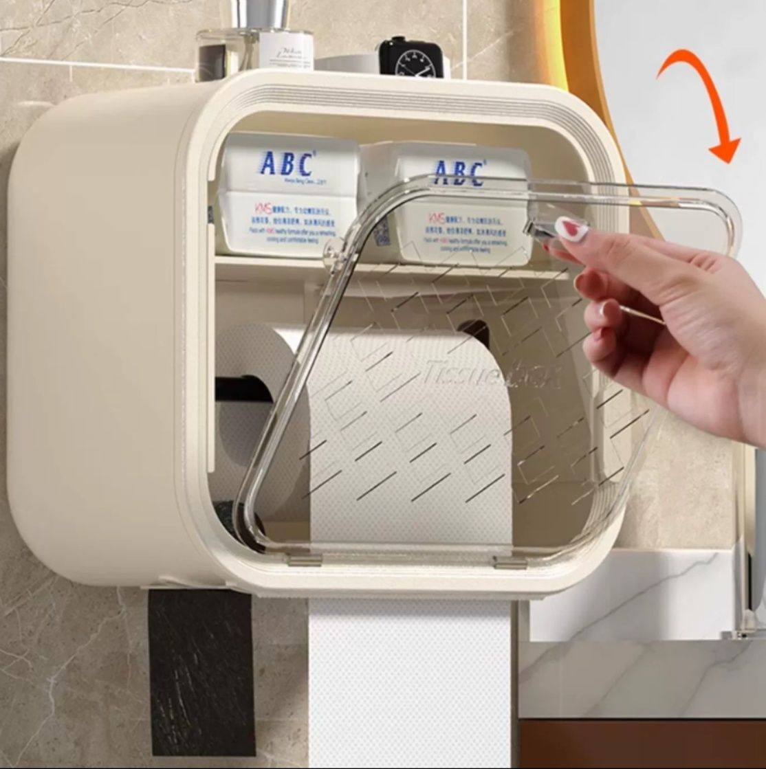 防塵性に優れた透明窓付きのトイレットペーパーホルダーカバーです。