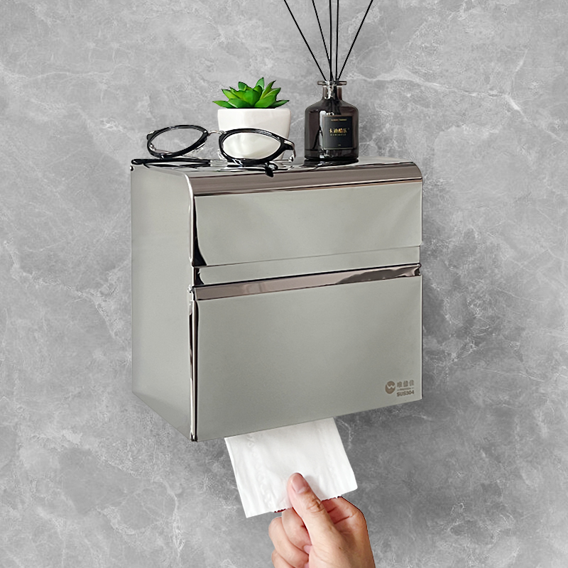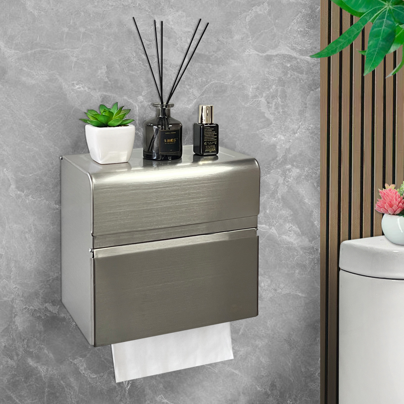 上部に小物や装飾品を置ける収納スペースを備えたトイレットペーパーホルダーカバーです。