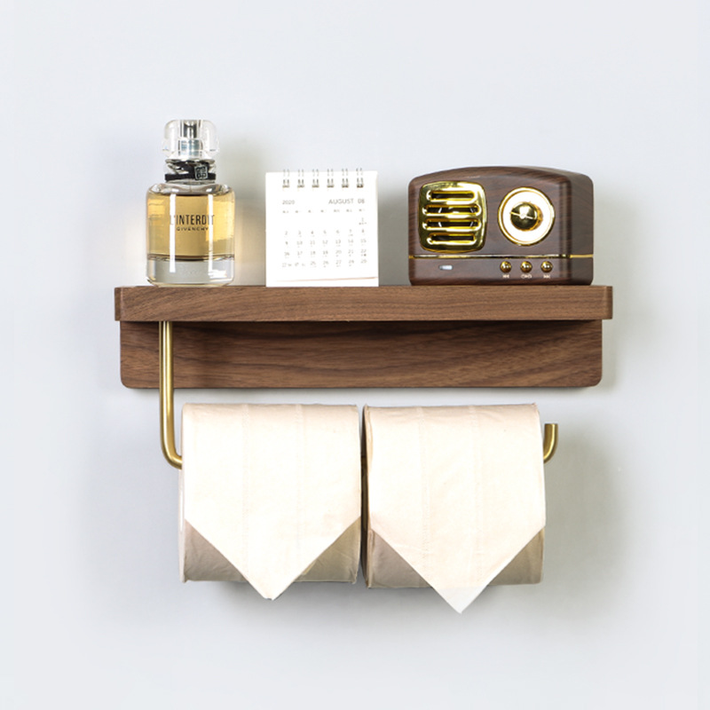 真鍮風のバーが高級感を演出し、落ち着いた木目調のデザインがお手洗い空間をおしゃれに彩ります。