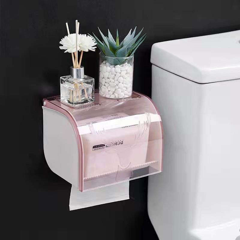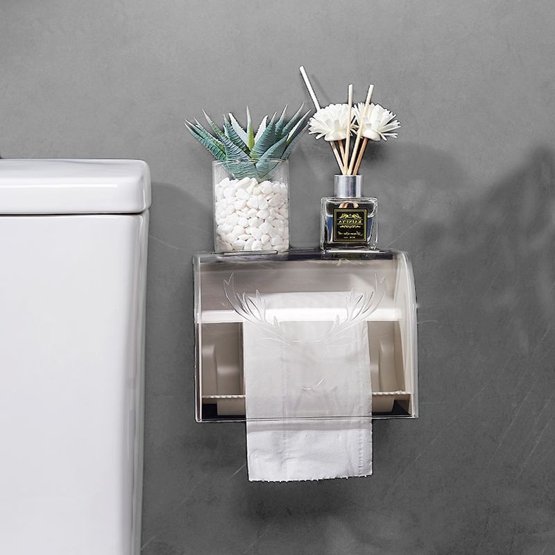 上部に小物が置ける便利な棚付きのトイレットペーパーホルダーです。